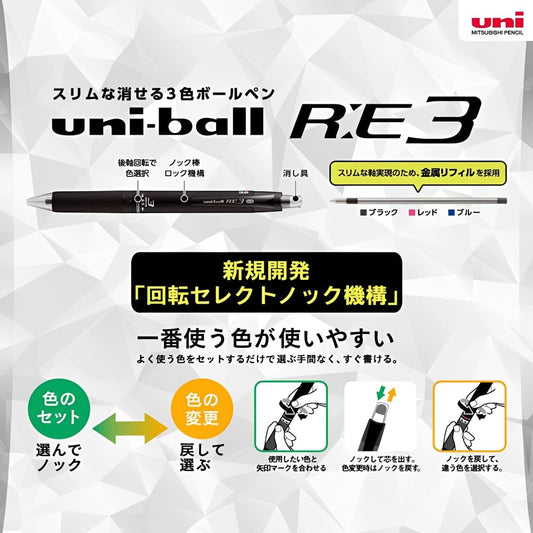 Mitsubishi Pencil Uni-ball R:E Erasable 3-Color Ballpoint Pen Refills URR103-05 (0.5mm) Blue (Set of 10)