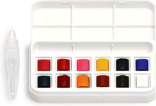 Winsor & Newton Cotman Half Pan with 12 Colors Water Brush