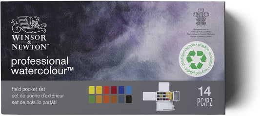 Winsor & Newton Cotman Watercolor Paint Set, Field Pocket Set, 12 Half Pan w/ Brush, Sponge, Bottle