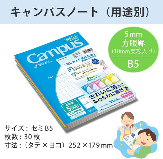 Vendor:KOKUYOKOKUYO Campus Notebook, Easy Erasing, Semi-B5, 5mm(0.2in) Grid Ruled, 0.4 inch (10 mm) Solid Line, 30 Sheets, Pack of 5, 5 Colors, Japan Import (NO-30S10-5X5)Regular price Rs. 2,133.70Regular priceUnit price / perRs. 4,999.00Sale price Rs. 2,133.70