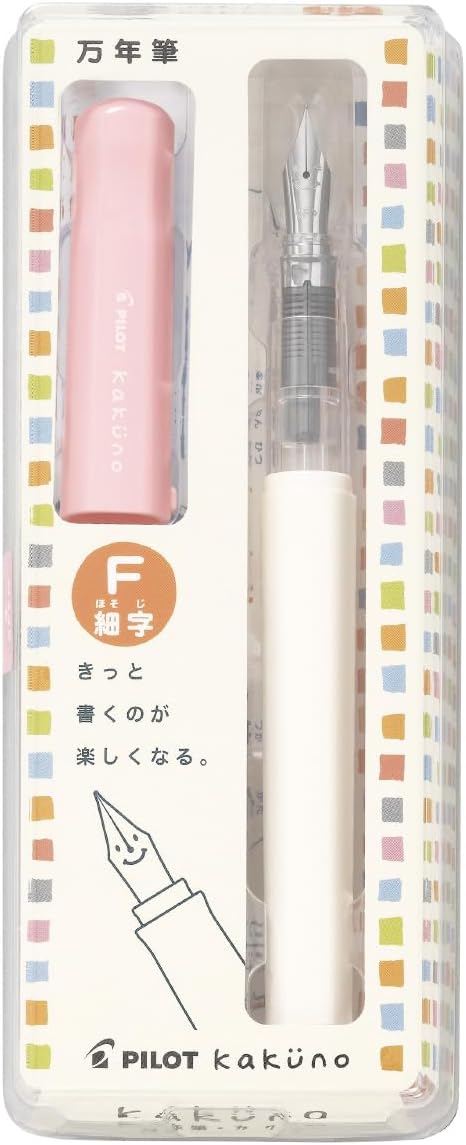 PILOT Kakuno Medium-Nib Fountain Pen, White Body Soft Pink Cap Body (FKA-1SR-SPM)