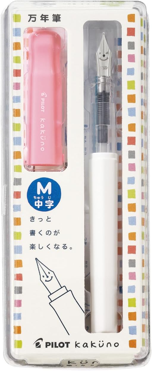 PILOT Kakuno Fountain Pen of Biginners, Medium Nib, Pink Body (FKA-1SR-PM)