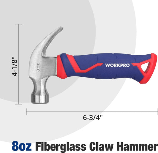 Vendor:WORKPROWORKPRO 8 oz Claw Hammer with Fiberglass Handle, All Purpose Hammer with Forged Hardened Steel Head, Smooth Face & Shock Reduction GripRegular price Rs. 5,385.55Regular priceUnit price / perRs. 7,188.00Sale price Rs. 5,385.55