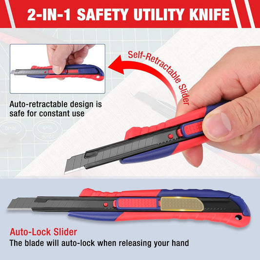 Vendor:WORKPROWORKPRO 2-In-1 Safety Utility Knife Retractable Snap-off blade, Metal Box Cutter Set, Razor Knife Exacto Craft Knives, with 10 Extra 9mm Blades, Pack of 3Regular price Rs. 11,779.05Regular priceUnit price / perRs. 13,677.00Sale price Rs. 11,779.05