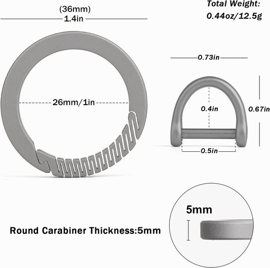 TISUR Titanium Carabiner Keychain Clip,D Key Rings for Keychains,Quick Release Keychain,Key Chain Clip for Men Women (Gray-Round)
