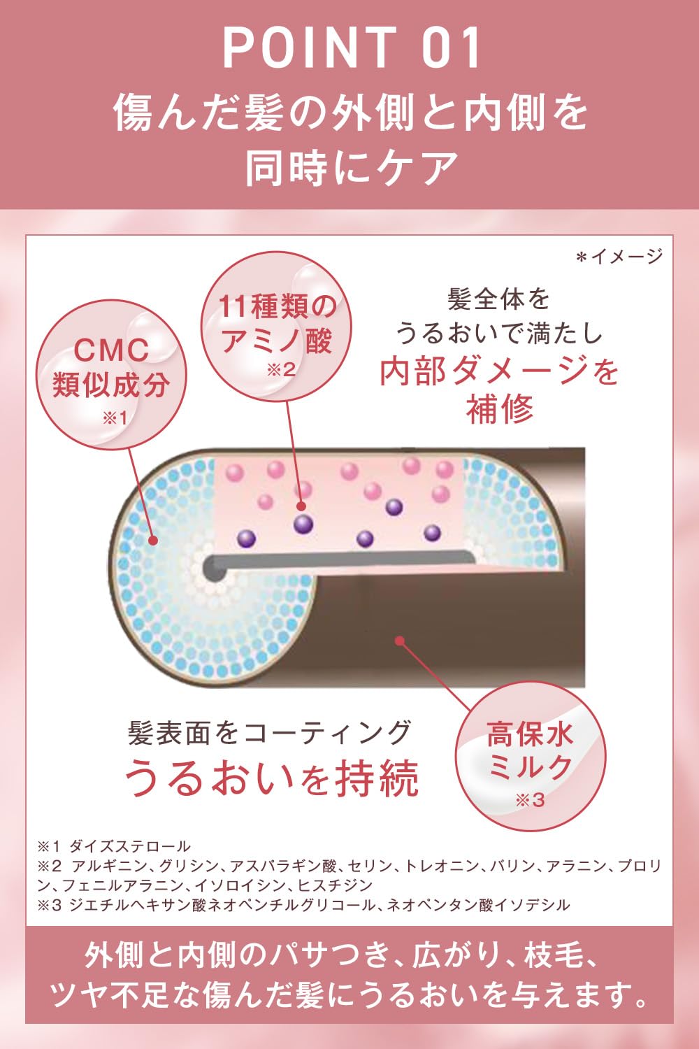In addition, the highly moisturizing milk coats the surface of the hair to prevent moisture from escaping.