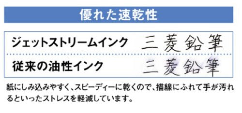 Details: quipped with ultra-low friction jet stream inks. ] The world's first breakthrough ink that produces a smooth writing experience with low writing resistance, creating a prime single model with an advanced design for Jetstream. The ink dries quickly, reducing the stress of getting dirty hands. Twin ball mechanism also prevents ink backflow and includes a built-in spring tip to prevent ink leakage from reaching the nib.