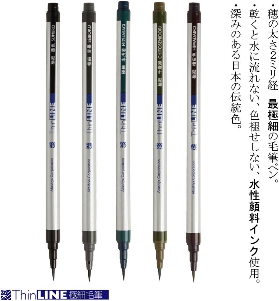Akashiya Fude Brush Pen Sai Thin Line, 5 Colors (TL300/VA)
