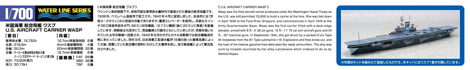 Aoshima 1/700 Water Line No.715 U.S.S Aircraft Carrier WASP Model Kit(Japan Import)