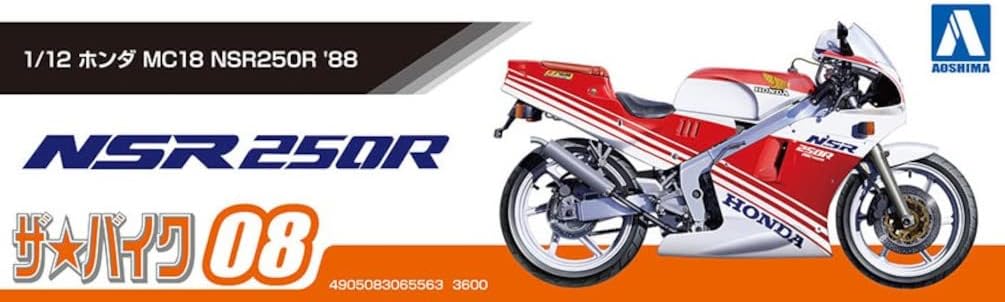 Aoshima Bunka Kyozai 1/12 The Bike Series No. 8 Honda MC18 NSR250R 1988 Plastic Model, Molded Color