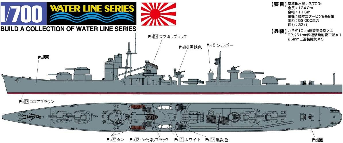 Aoshima Bunka Kyozai 1/700 Water Line Series Japanese Navy Destroyer First Month Plastic Model 440