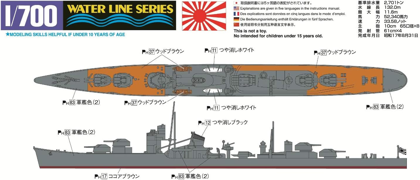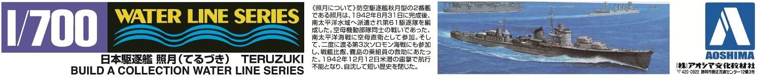 Aoshima Bunka Kyozai 1/700 Water Line Series Japanese Navy Destroyer Terugetsu Plastic Model 427