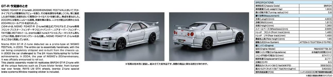 Aoshima Bunka Kyozai 1/24 The Model Car Series No.34 Nismo BNR34 Skyline GT-R Z-tune 2004 Plastic Model