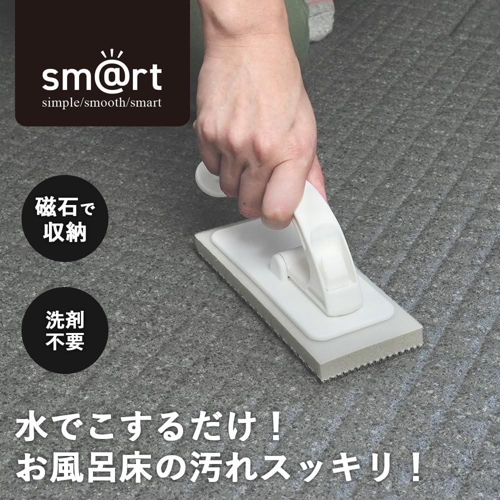 Azuma Industrial sm@rt779 Smart Bathroom Floor Wash, Main Body, Magnetic Storage, Simply Wet Water and Rub Stick, Pink Stain, Bath Floor, Uneven Floor, Bath Brush, SPO