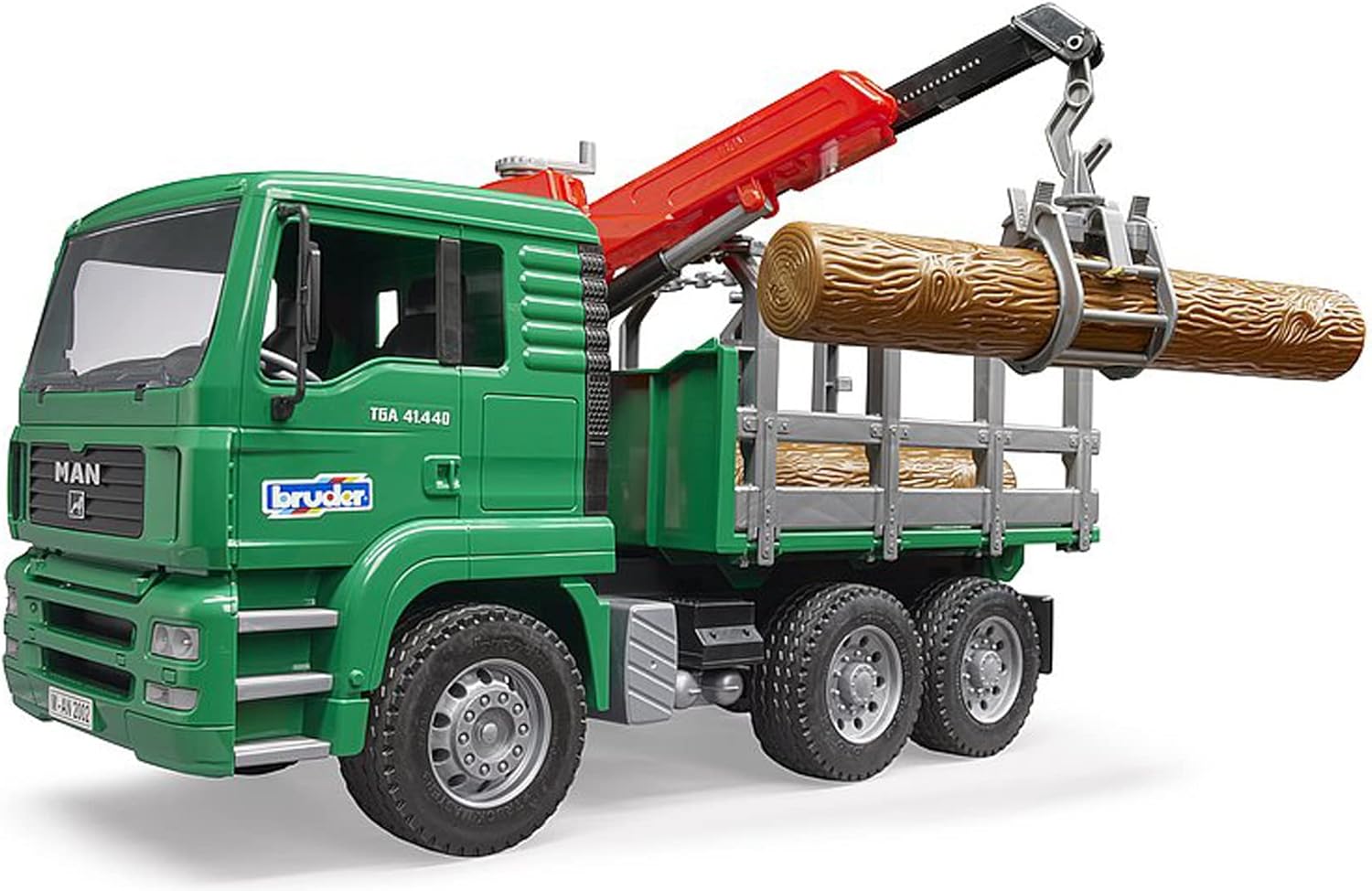 Bruder Toys - Forestry MAN Timber Truck with Fully Functioning Loading Crane, Tilting Loading Bed, and 3 Loadable Trunks - Ages 4+