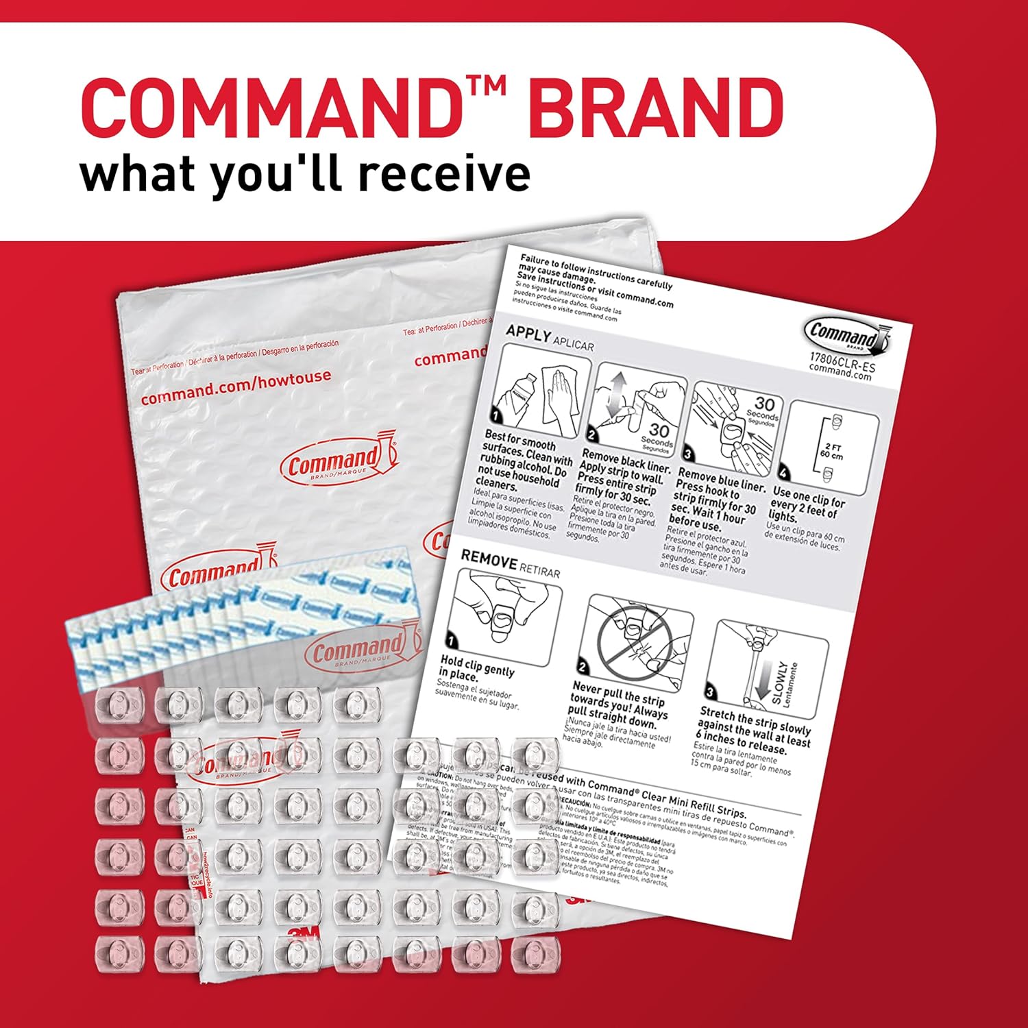 Command Indoor Mini Light Clips, Damage Free Hanging Christmas Light Clips, Mini Wall Clips for Hanging Indoor Christmas Decorations, Lights and Cables, 45 Clear Clips and 54 Command Strips