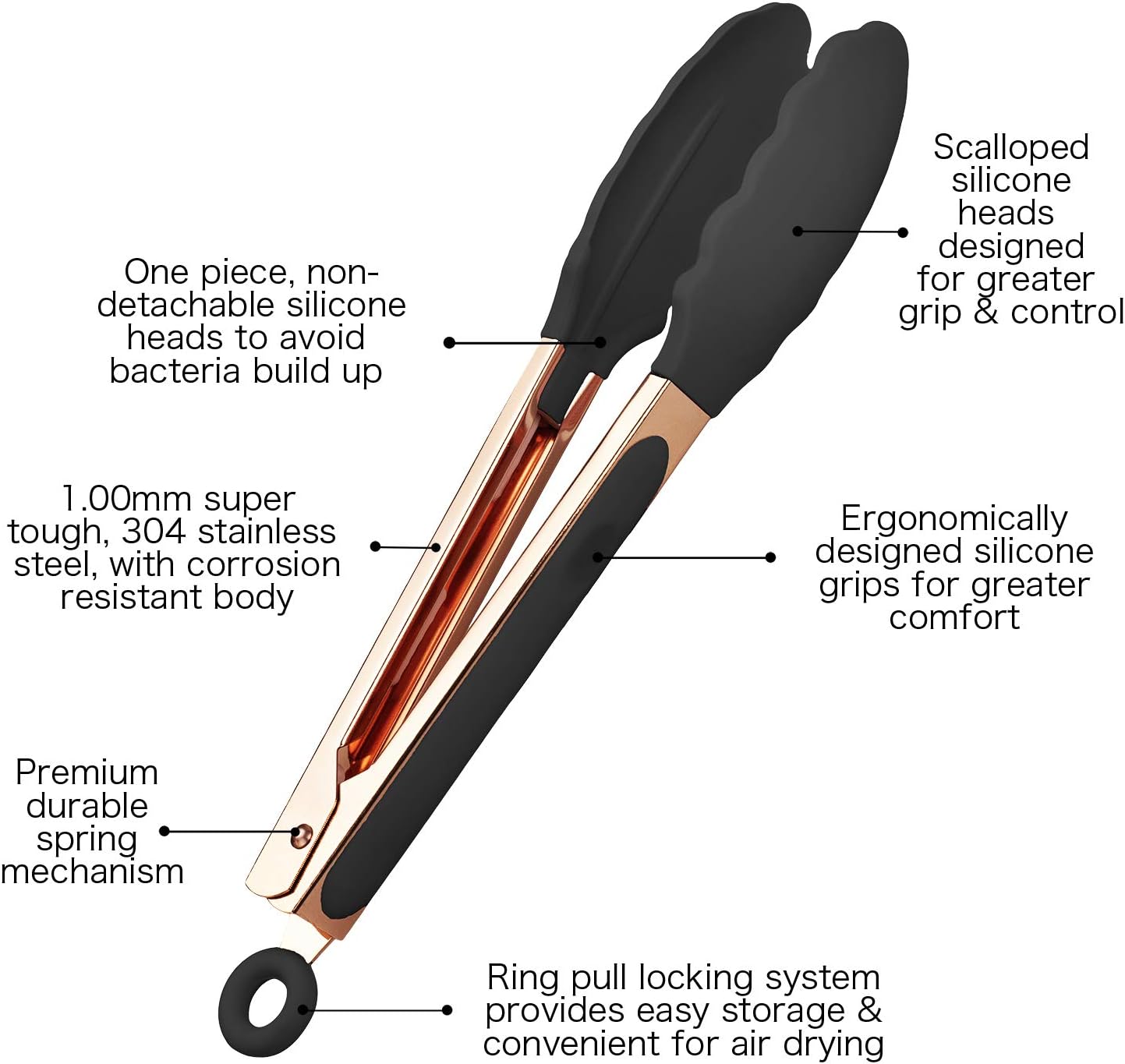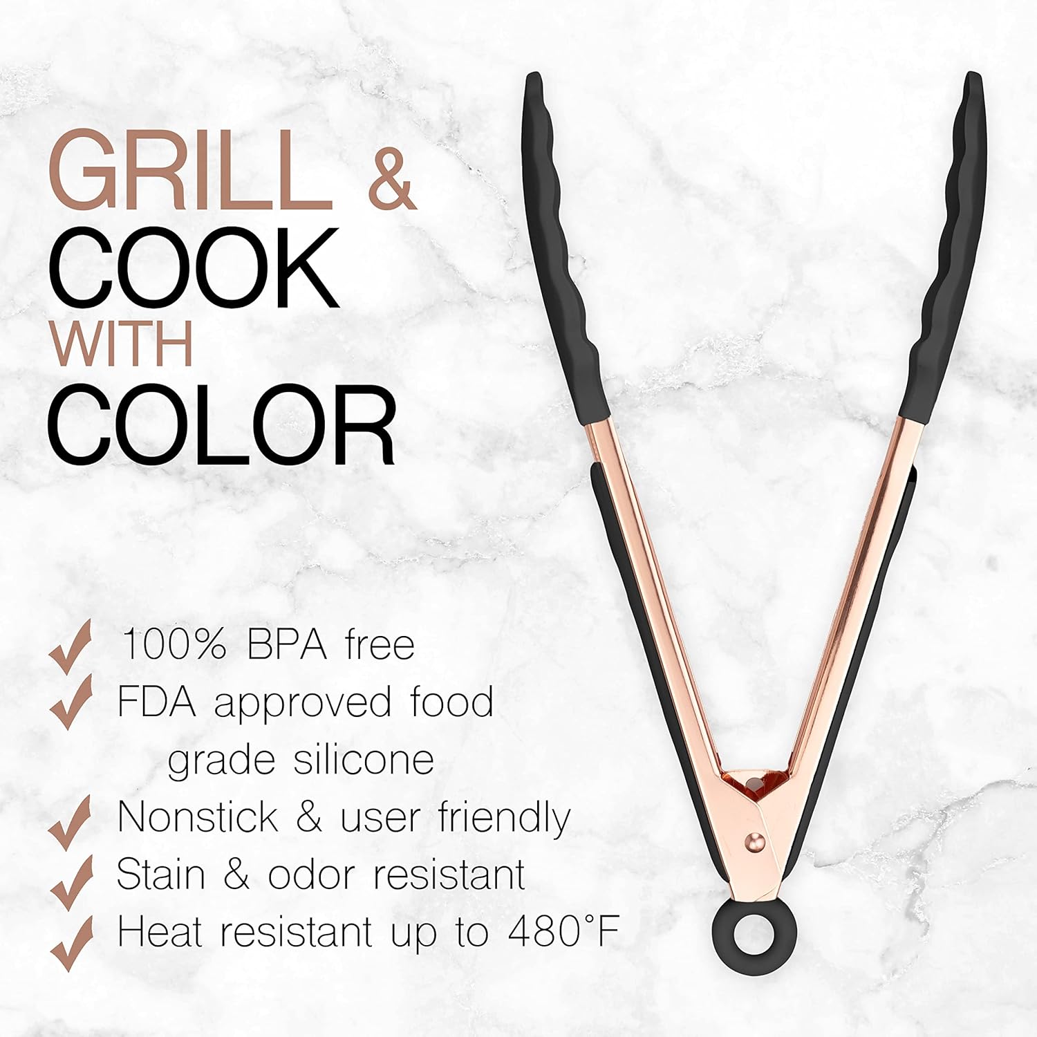 COOK WITH COLOR Stainless Steel Silicone Tipped Kitchen & BBQ Tongs Set, 2 Pc Tongs, Black