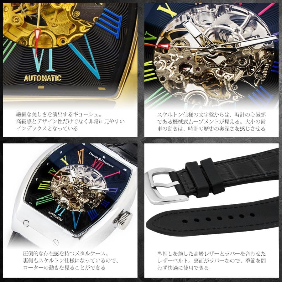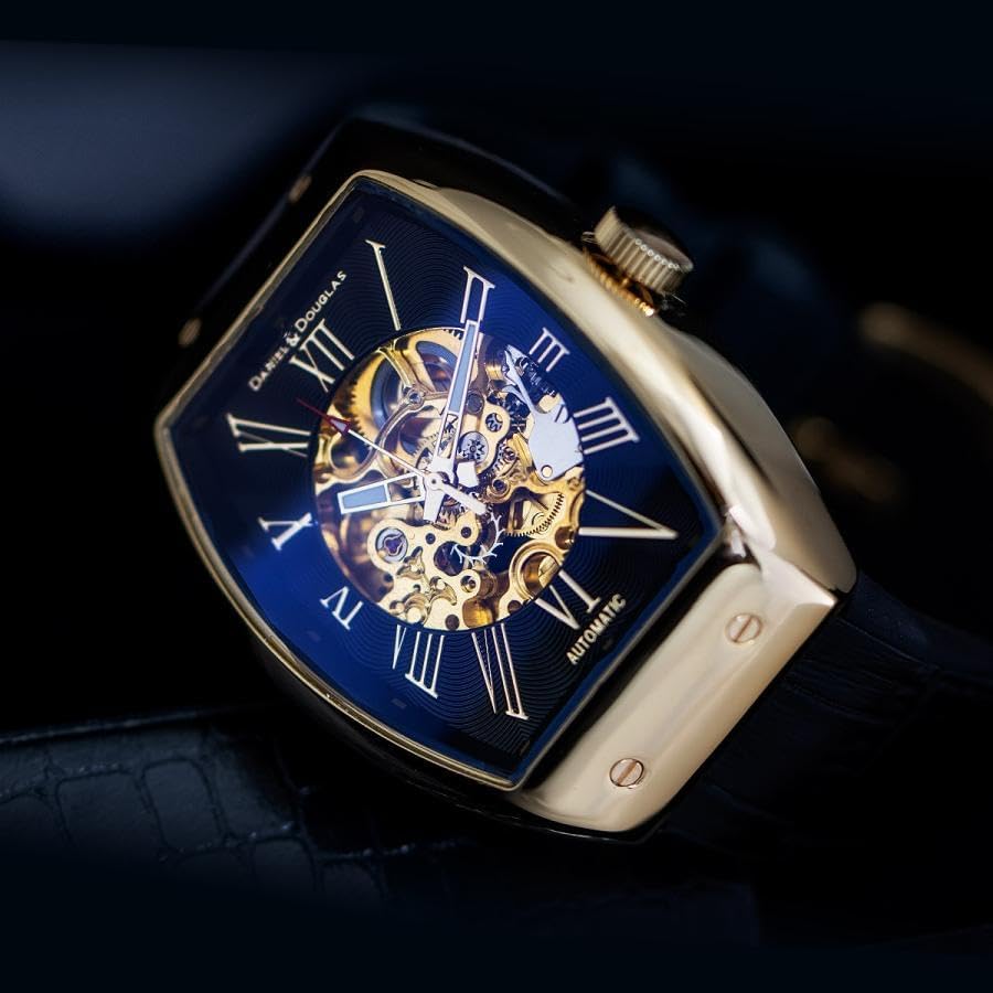 Daniel&Douglas DD8808 Men's Watch, Automatic Winding, Skeleton Tonneau, black / gold