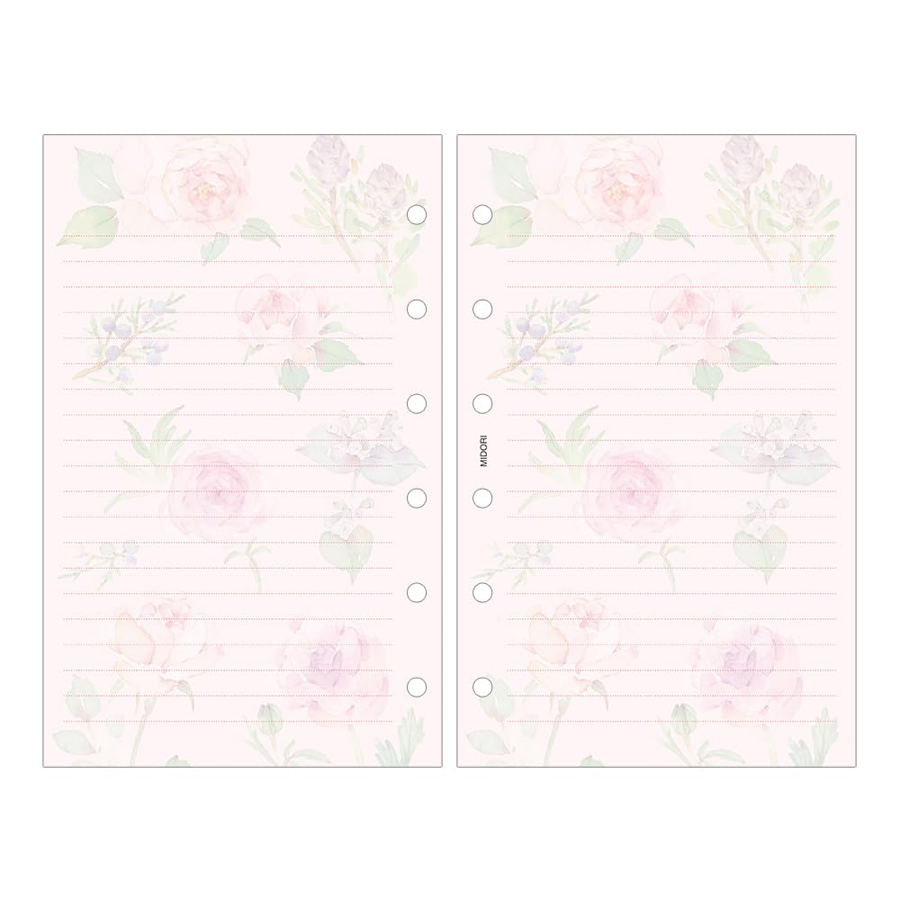 - A beautiful lined memo refill for a system organizer with a watercolor rose floral pattern