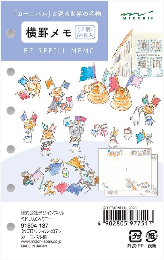 DESIGNPHIL MIDORI System Notebook Refill B7 Lined Memo Country Time Floral Pattern 91804138