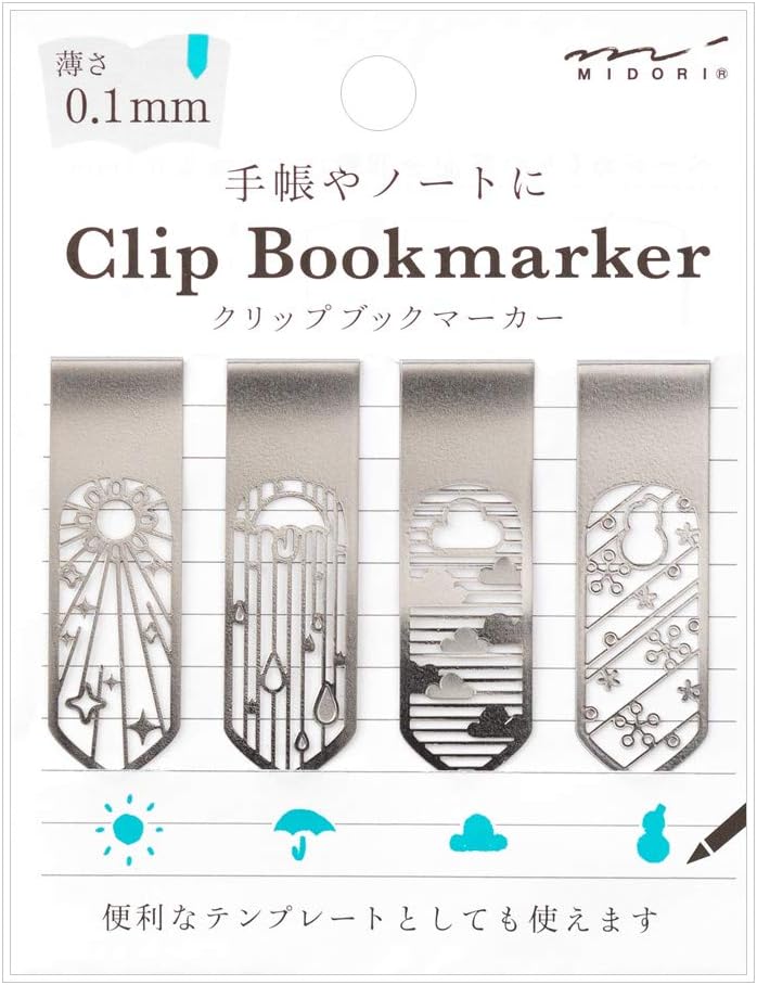 Designphil Weather Pattern Bookmarker Clip, 4 Pack, Stainless Steel