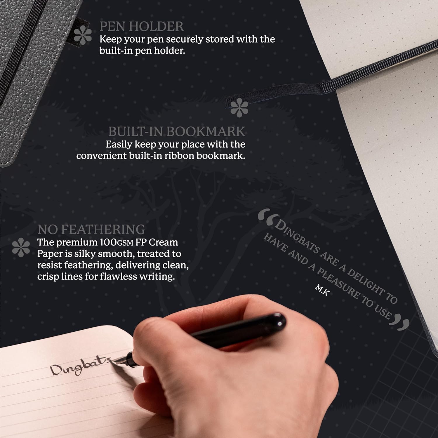 Dingbats* Wildlife Dotted Writing Journal Notebook A5 - Vegan Leather Hardcover - Ideal for Work, Travel - Pocket, Elastic Closure, & Bookmark