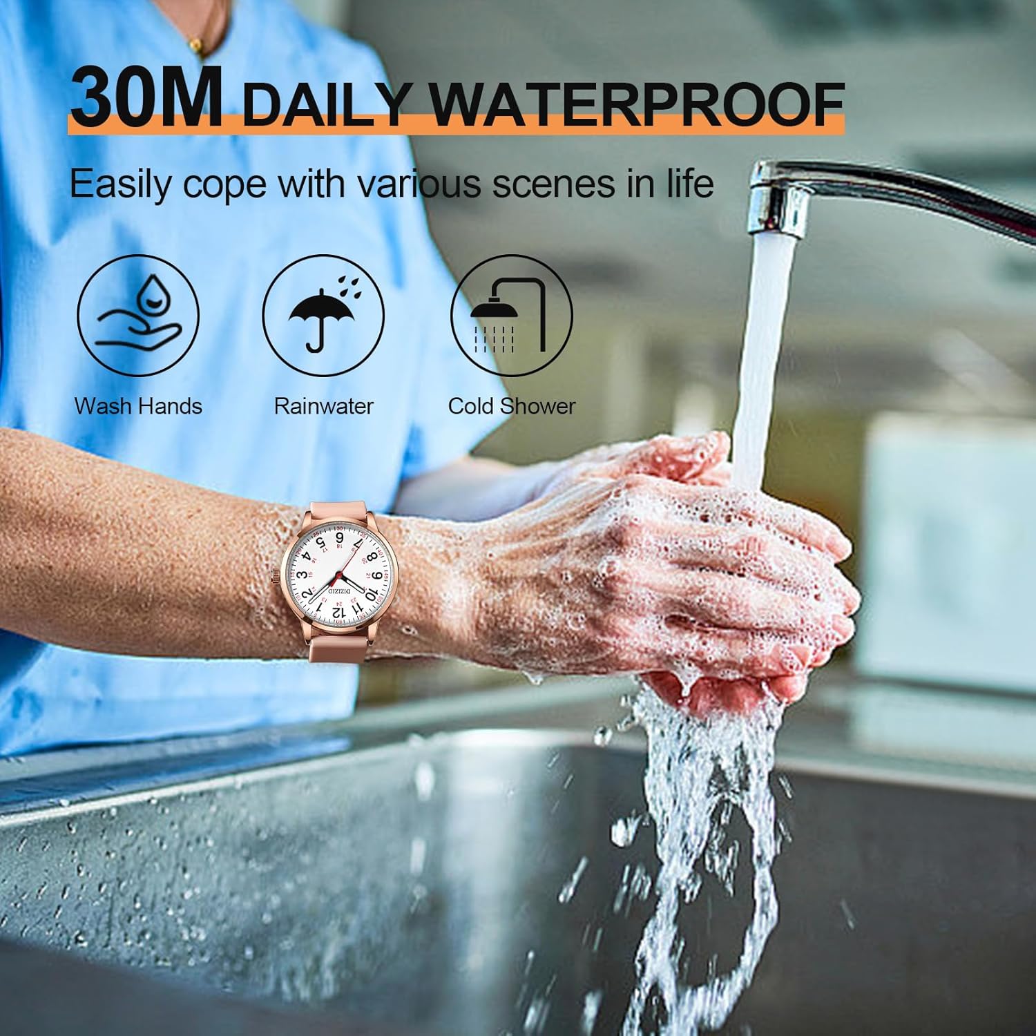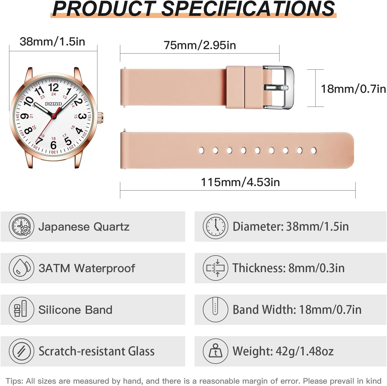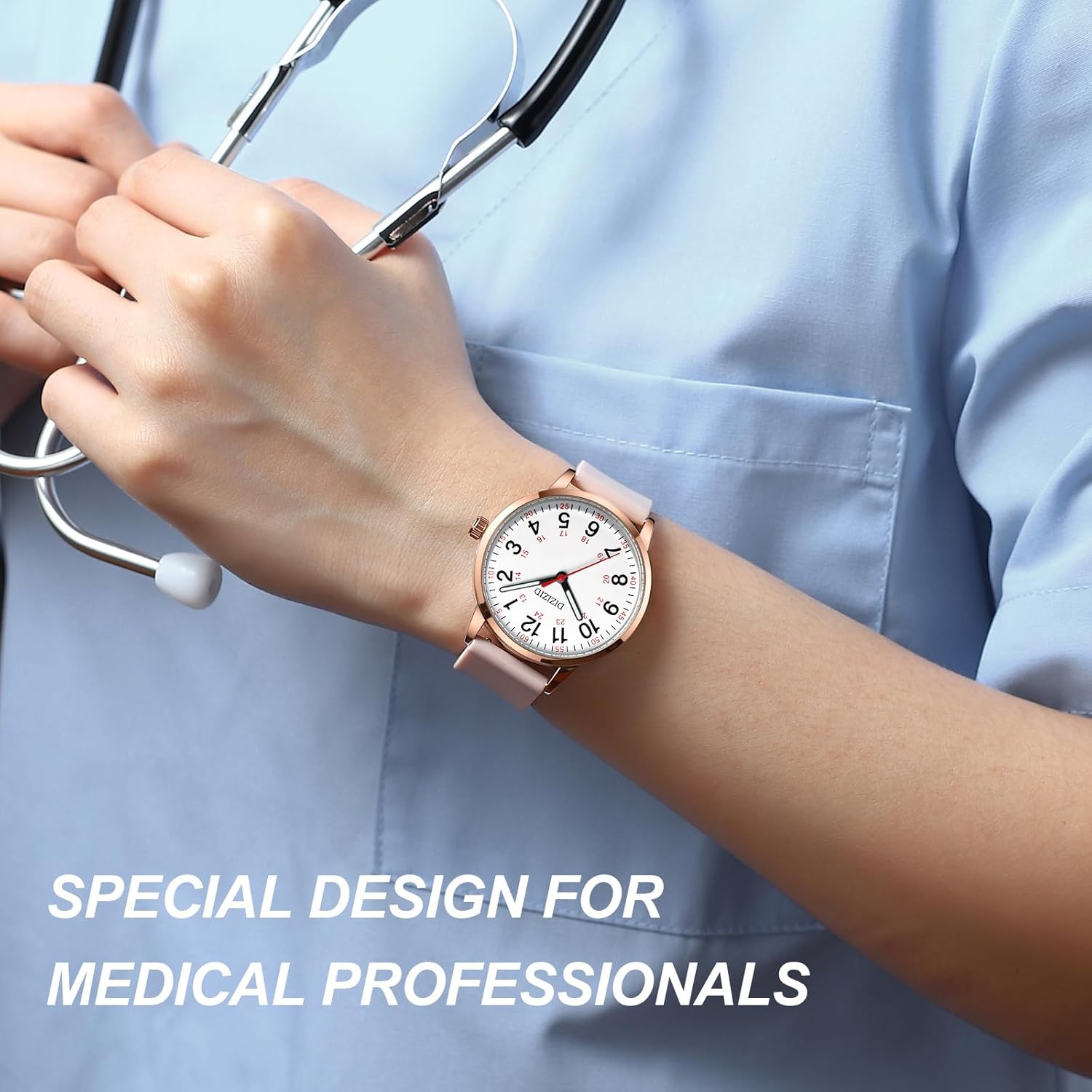 DIZIZID Nurse Watch for Medical Professionals and Students, Military Time Waterproof Luminous Easy Read Dial, 24 Hour with Second Hand, Colorful Silicone Band, Wrist Watches for Women, Men, Doctors