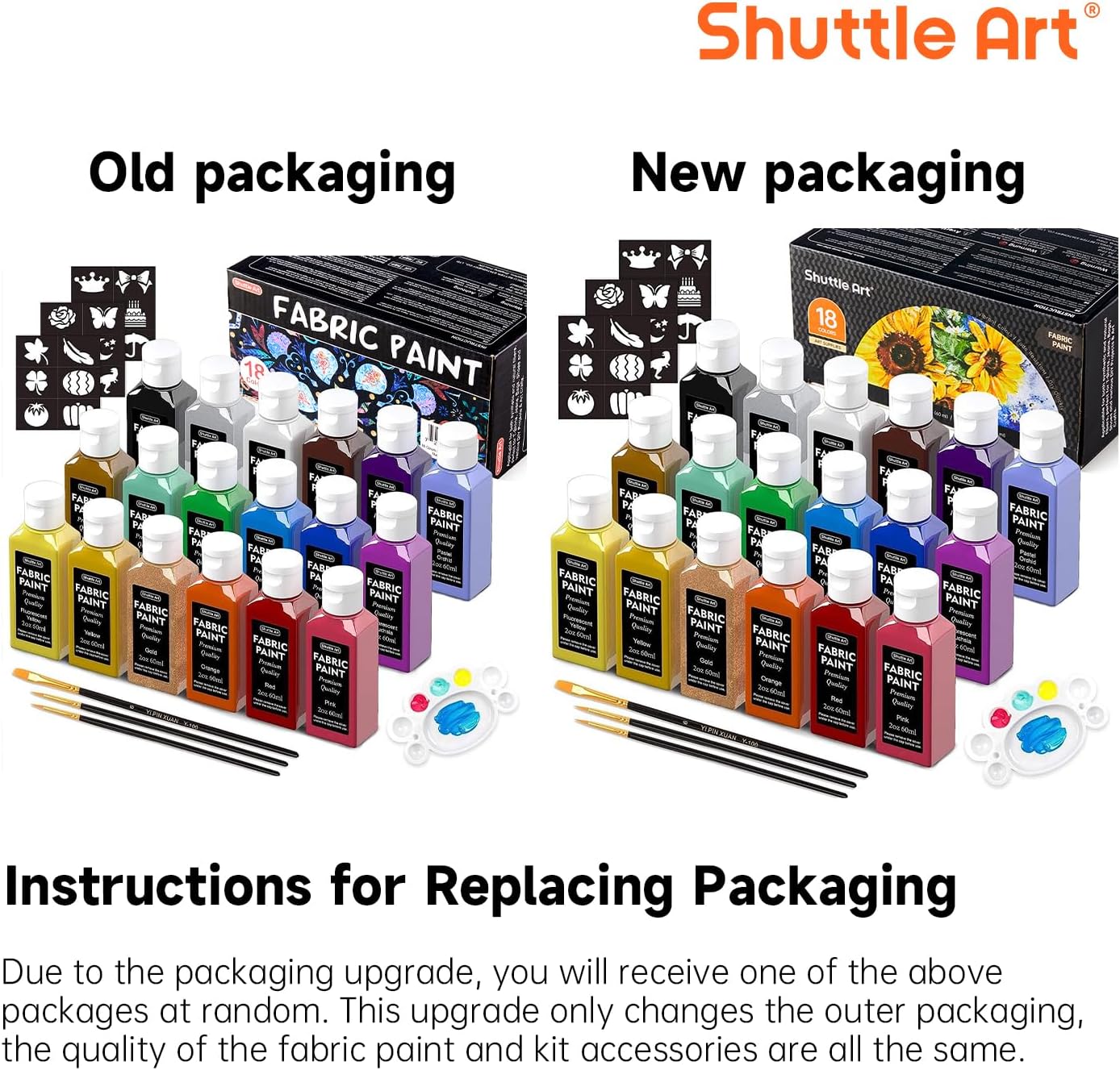 Fabric Paint, Shuttle Art 18 Colors Permanent Soft Fabric Paint in Bottles (60ml/2oz) with Brushes, Palette, Stencils, Non-Toxic Textile Paint for T-Shirts, Shoes, Jeans, Bags, DIY Projects&Art