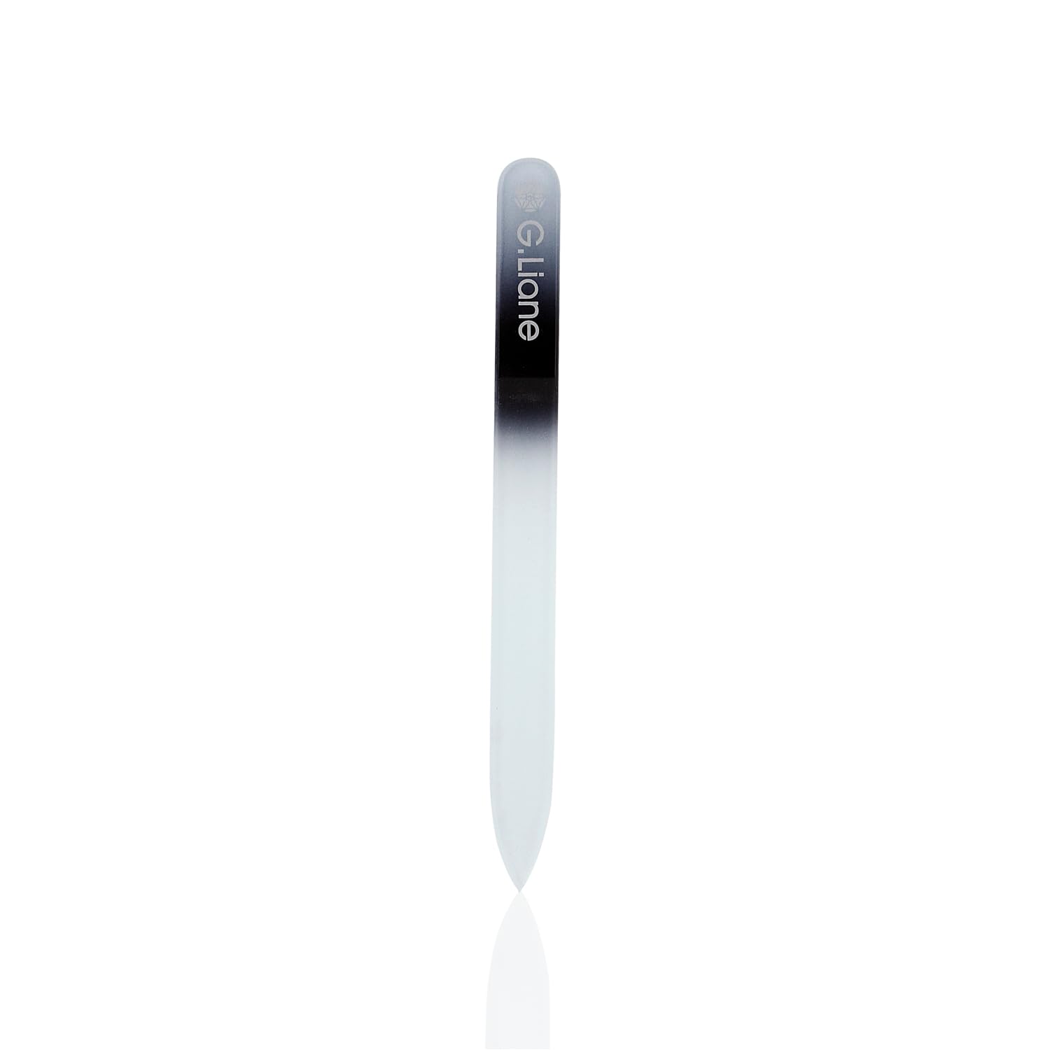 G.Liane Glass Nail File, Professional Crystal Glass Nail File with Case, Double-Sided Etched Glass Nail File for Manicure (Rainbow Black)