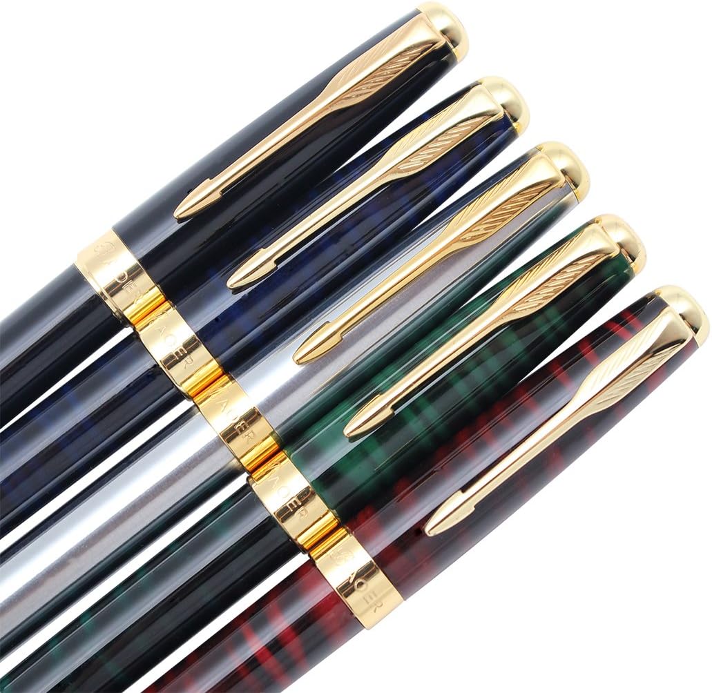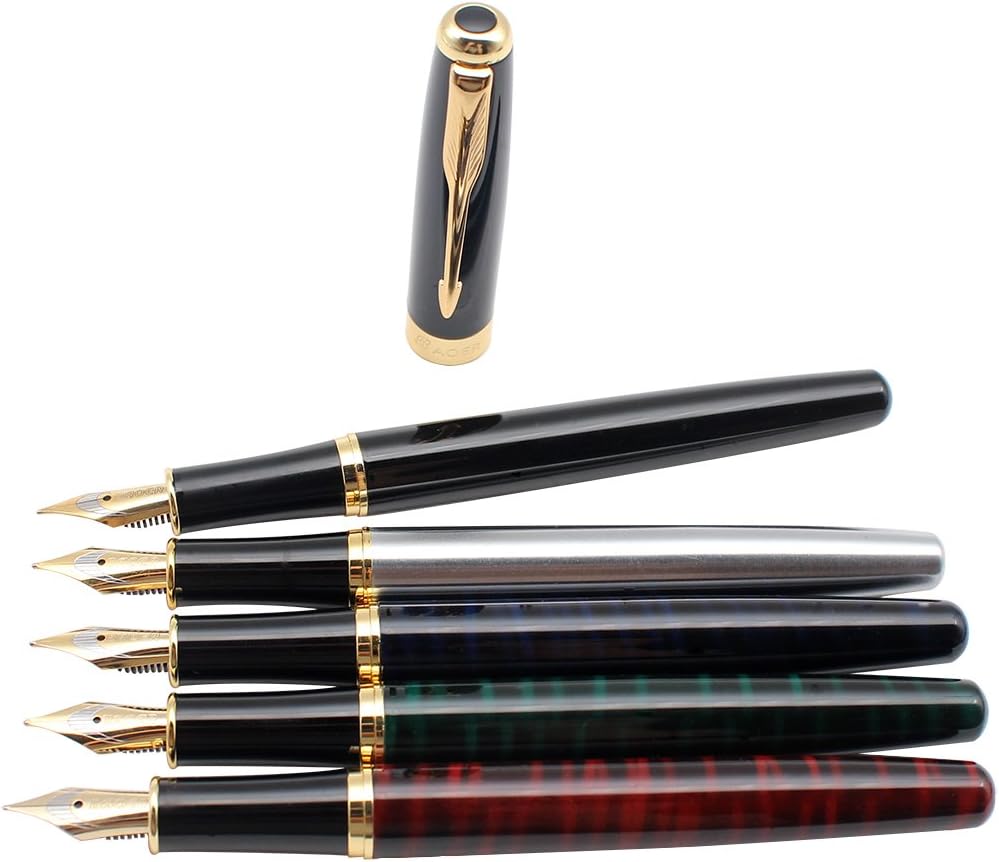 Gullor 5 PCS Classic Metal Fountain Pen B388, Gift Pens with Converters, 5 Colors