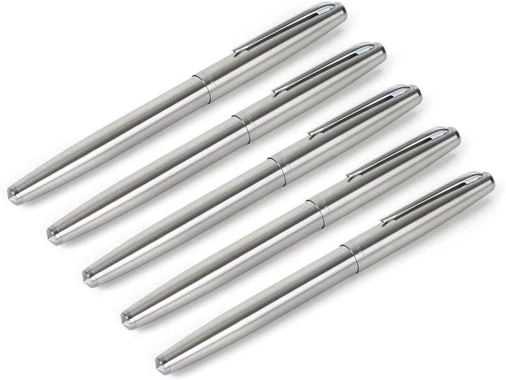 Gullor 5 PCS Stainless Steel EF Nib Classic Fountain Pens Set with Ink Converters