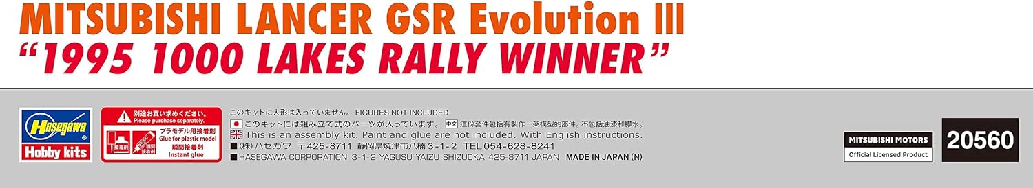 Hasegawa 1:24 Mitsubishi Lancer GSR Evolution III '1995 1000 Lakes Rally Winner'
