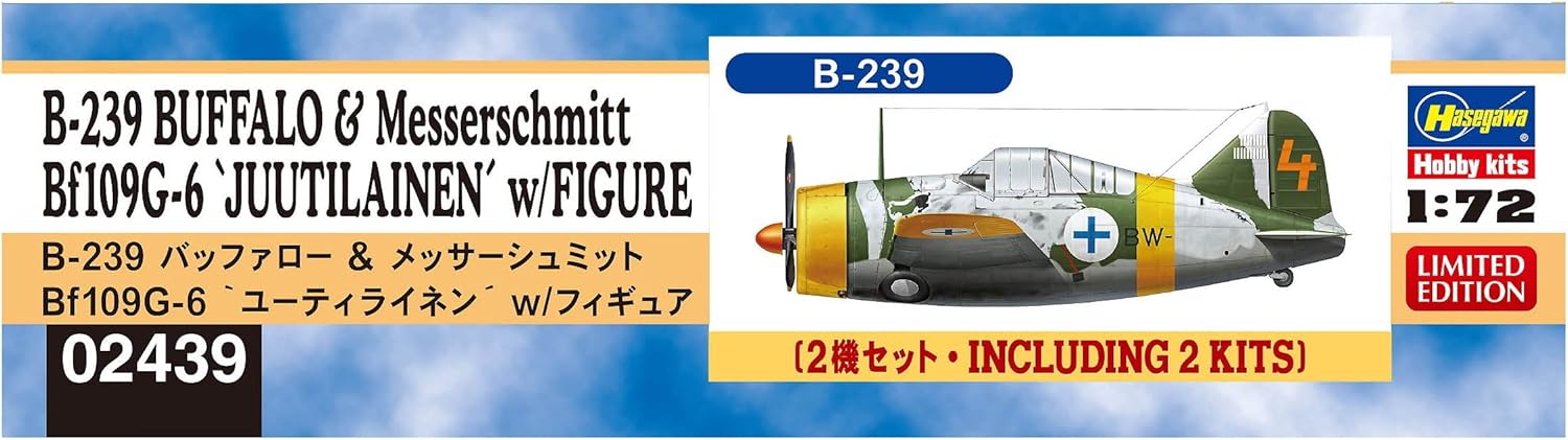 Hasegawa 02439 1/72 Finnish Air Force B-239 Buffalo & Messerschmitt Bf109G-6 Uilainen w/Figure Plastic Model