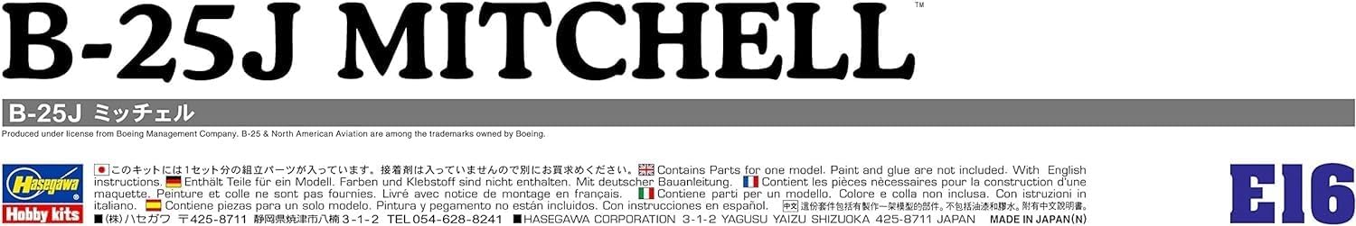 Hasegawa 1:72 Scale North American B-25J Mitchell Model Kit