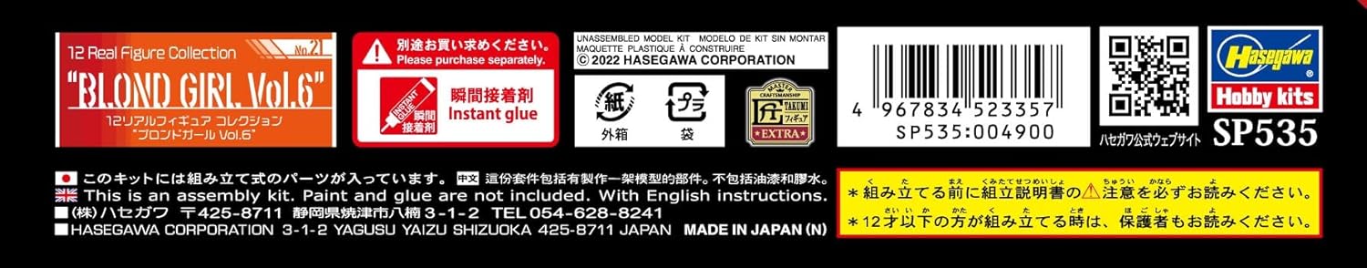 Hasegawa 1/12 Realistic Figure Collection No.21 Blonde Girl Vol. 6 Unpainted Resin Kit SP535