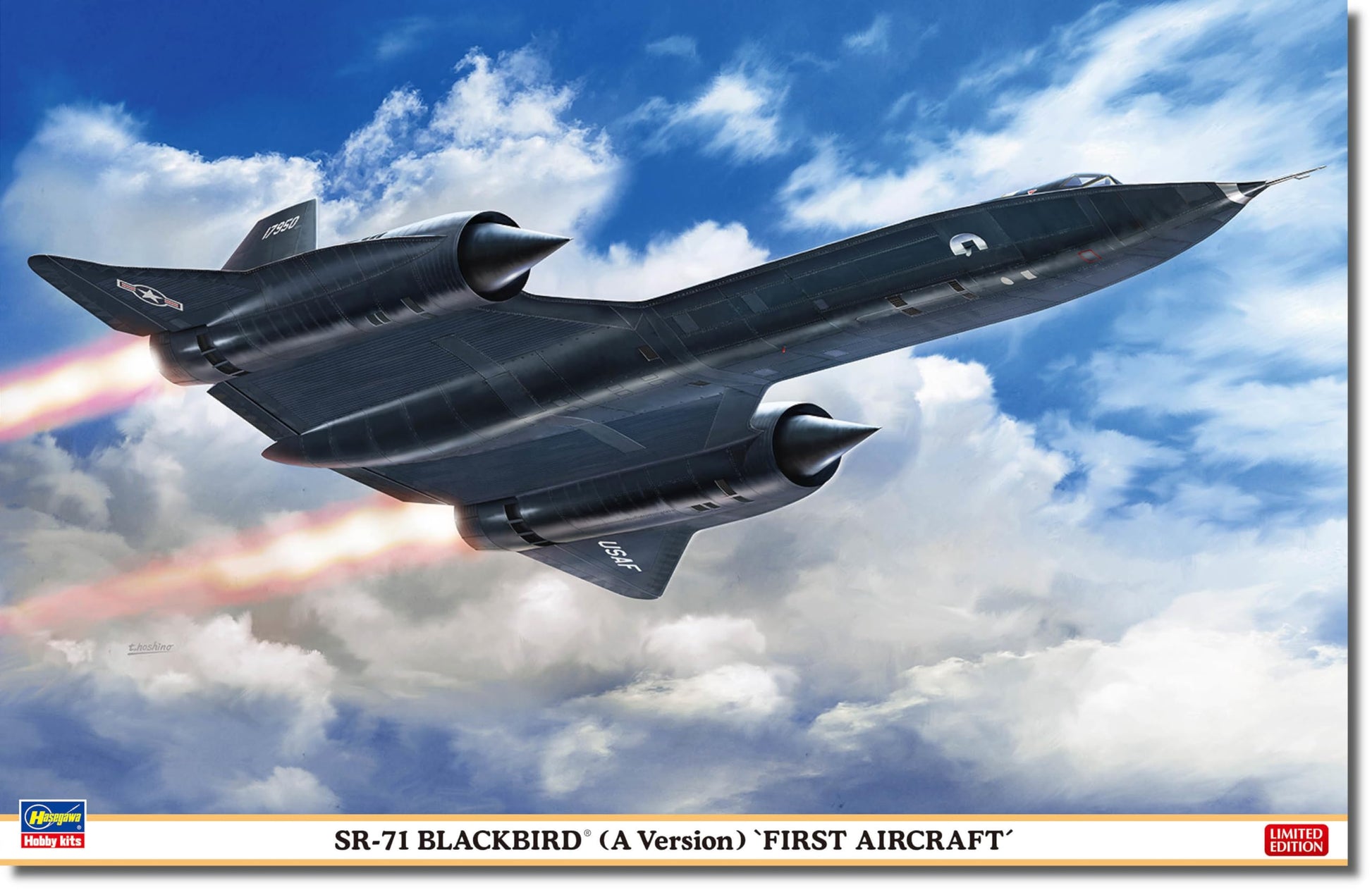 Details: Plastic model kit of a US fighter jet with 44 pieces. Decals of the USAF Test Plane Code 17950 (64-17950, December 1964. Length built 472 mm / width 236 mm.