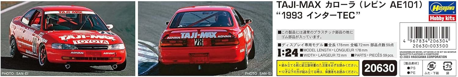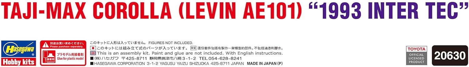 Hasegawa 20630 1/24 Taji-Max Corolla, Levin AE101, 1993 Inter Tec Model Kit, Multi-Colour