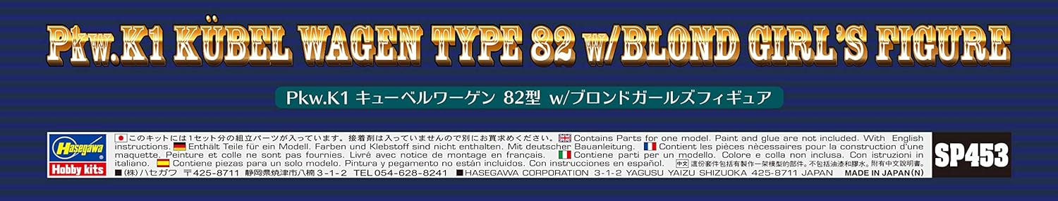 Hasegawa SP453 1/24 Pkw.K1 Cubelwagen Type 82 w/Blonde Girls Figure Plastic Model