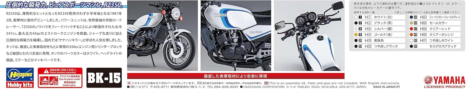 Hasegawa BK15 1/12 Yamaha RZ350, 1981 Model Kit, Multi-Colour