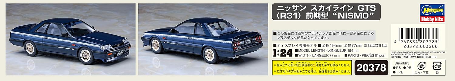 Hasegawa HA020378 1:24 Nissan Skyline GTS (R31) Early Version 'NISMO', Blue