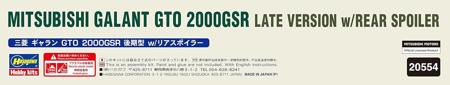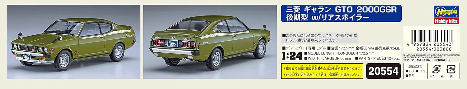 Hasegawa HA20554 1:24 Mitsubishi Galant GTO 2000GSR Late Version with Rear Spoiler Model Kit, Molded Color