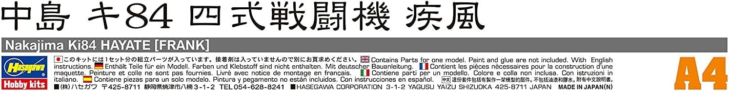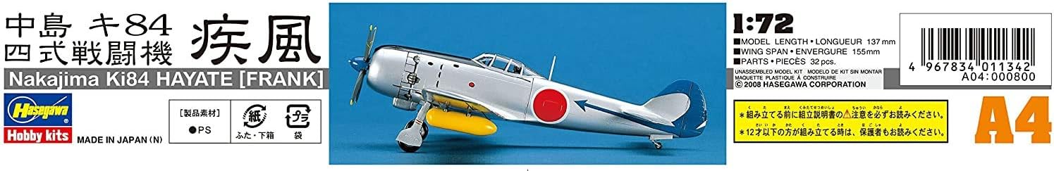 Hasegawa Nakajima Ki84 Hayate (Frank) (Plastic Model) 1/72 Air Plane A4