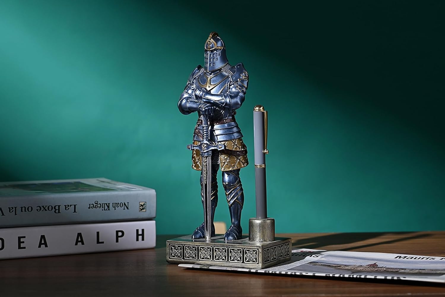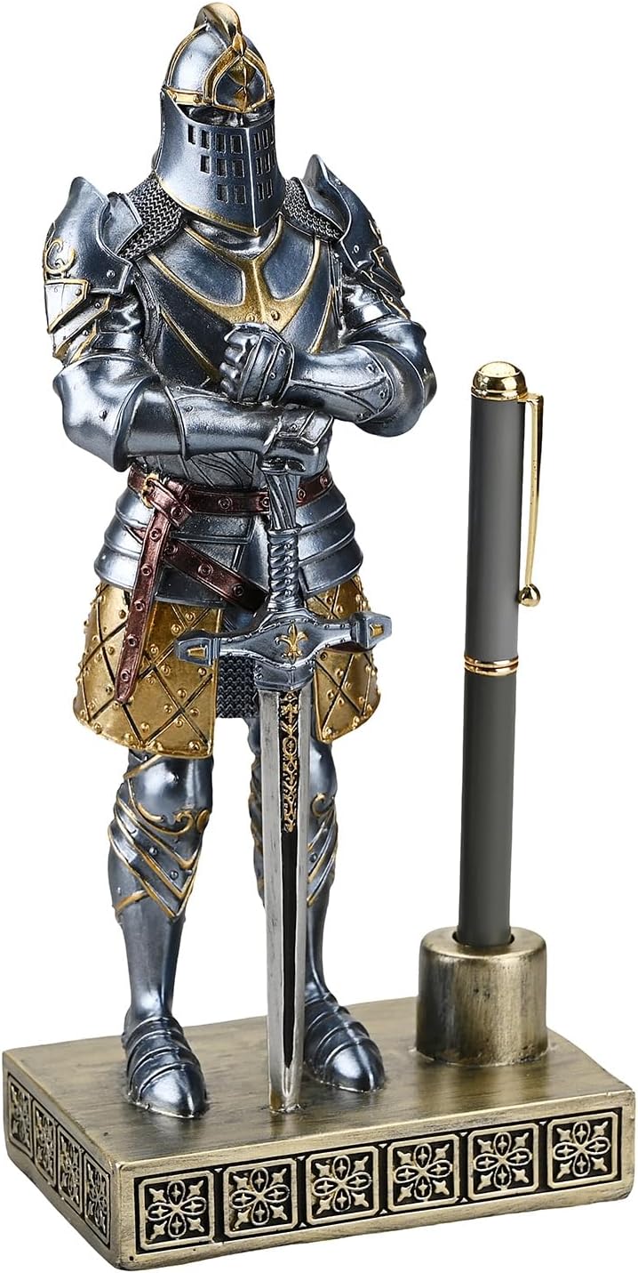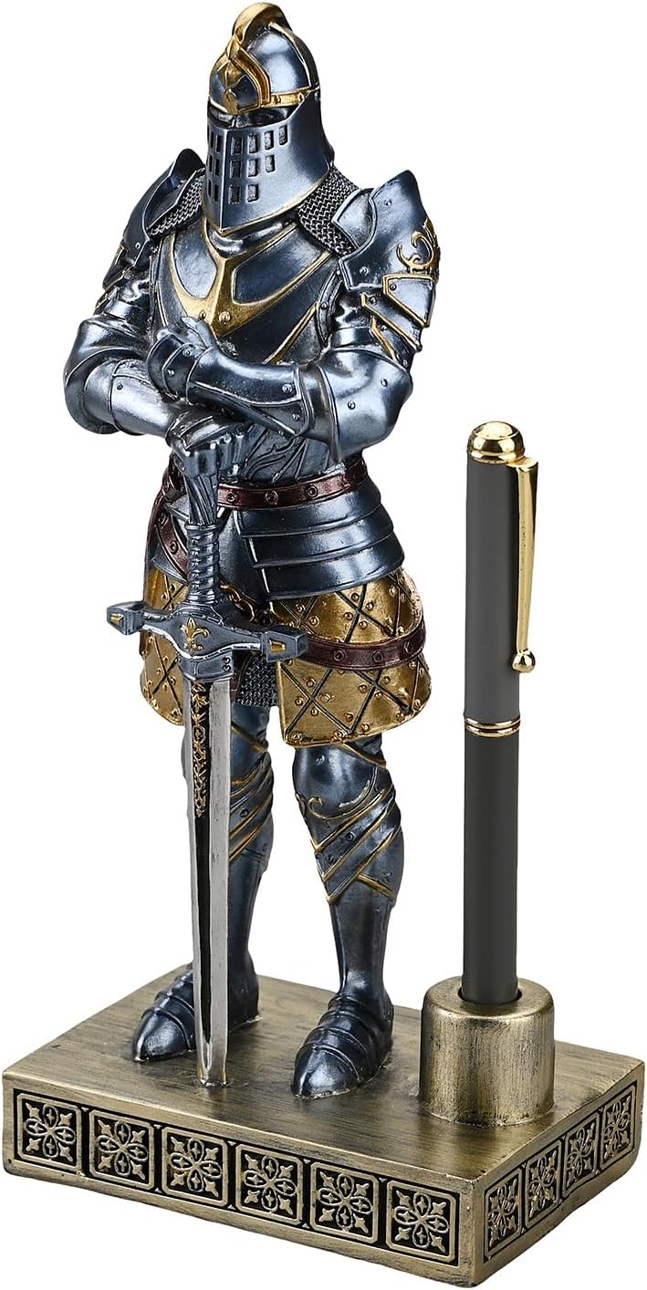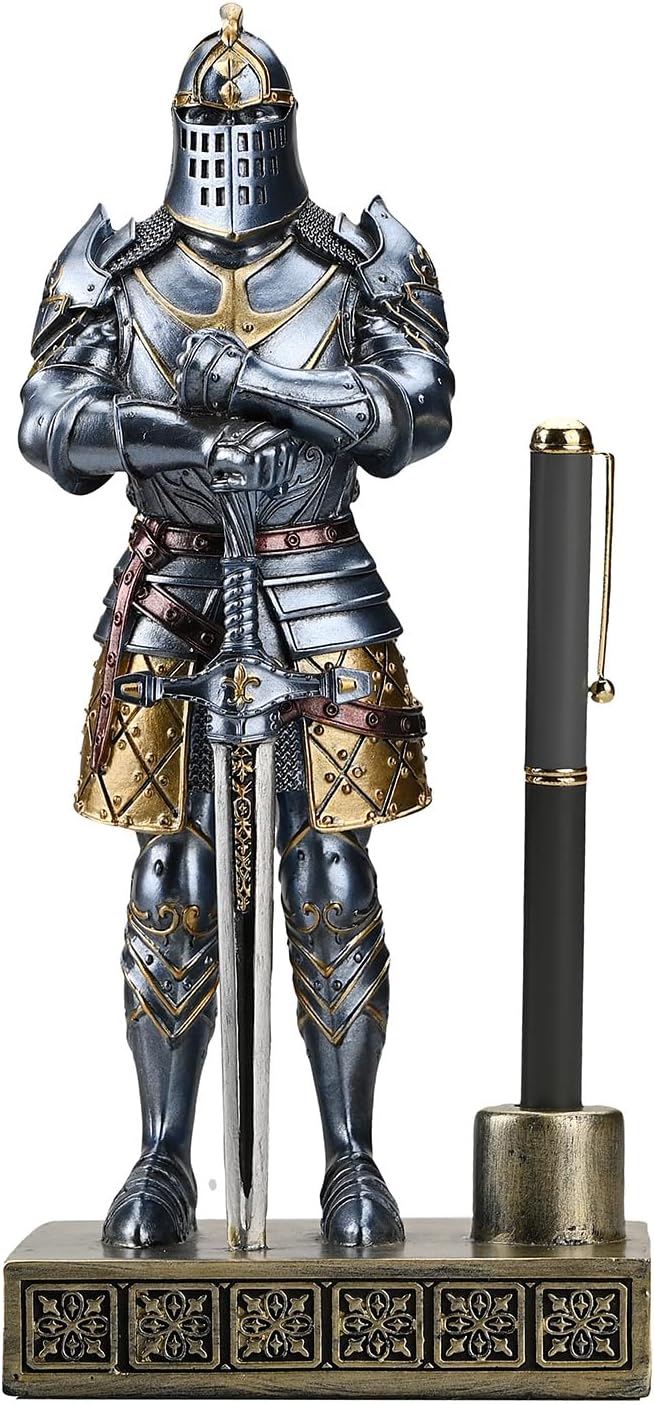 HDMbigmi King's Guard Knight Pen Stand Statue Office Pen Stand Desk Organizer For Men Top Collection as Gift 9.45 Inches (Blue)