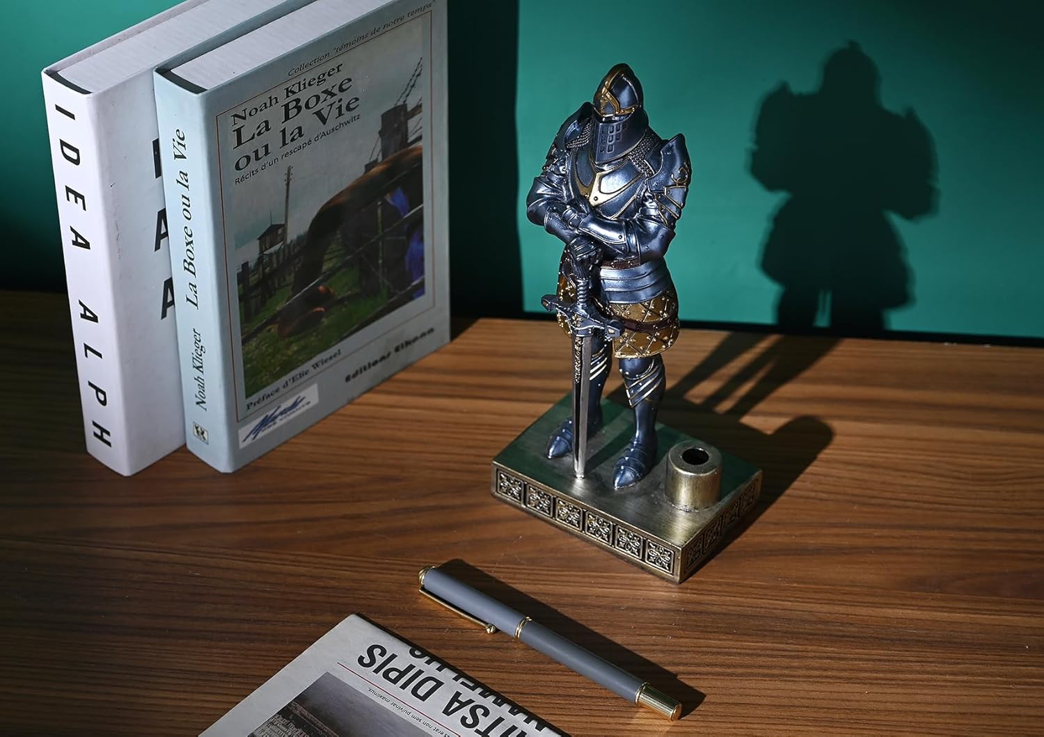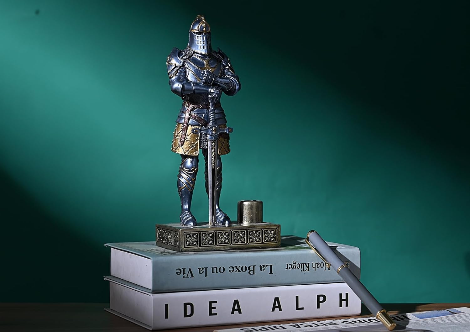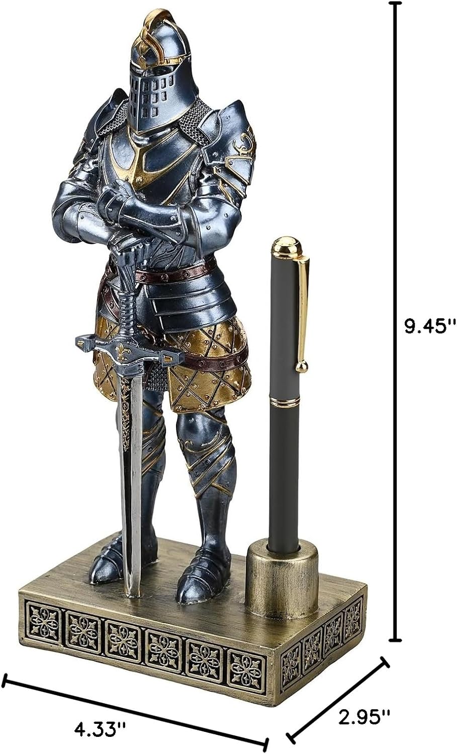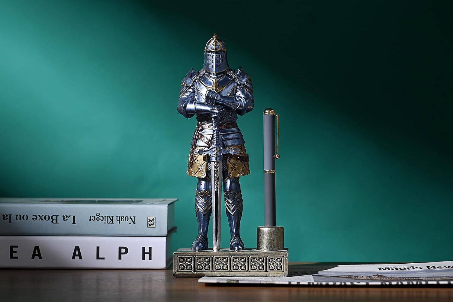 HDMbigmi King's Guard Knight Pen Stand Statue Office Pen Stand Desk Organizer For Men Top Collection as Gift 9.45 Inches (Blue)