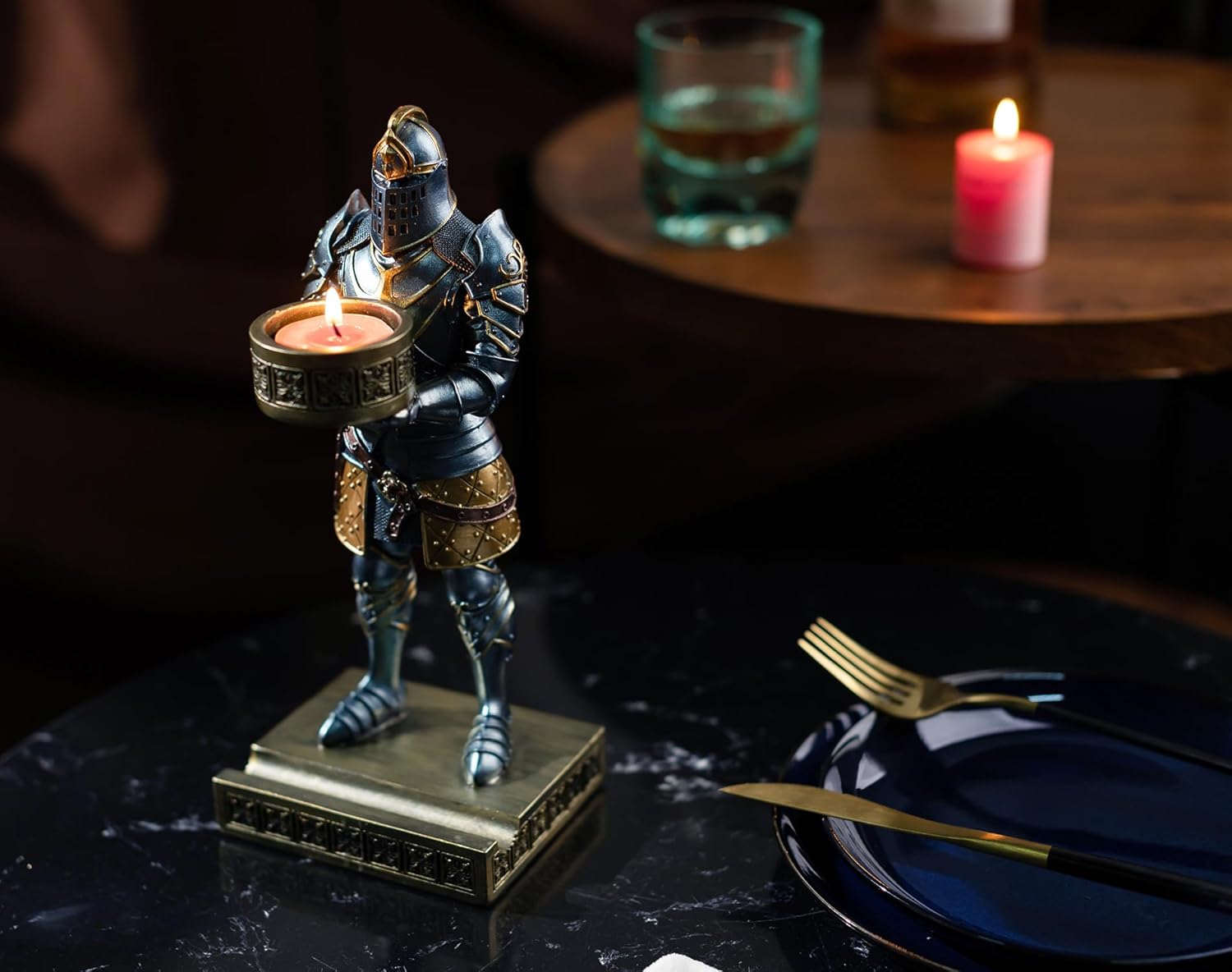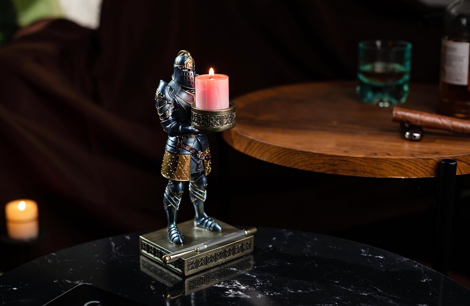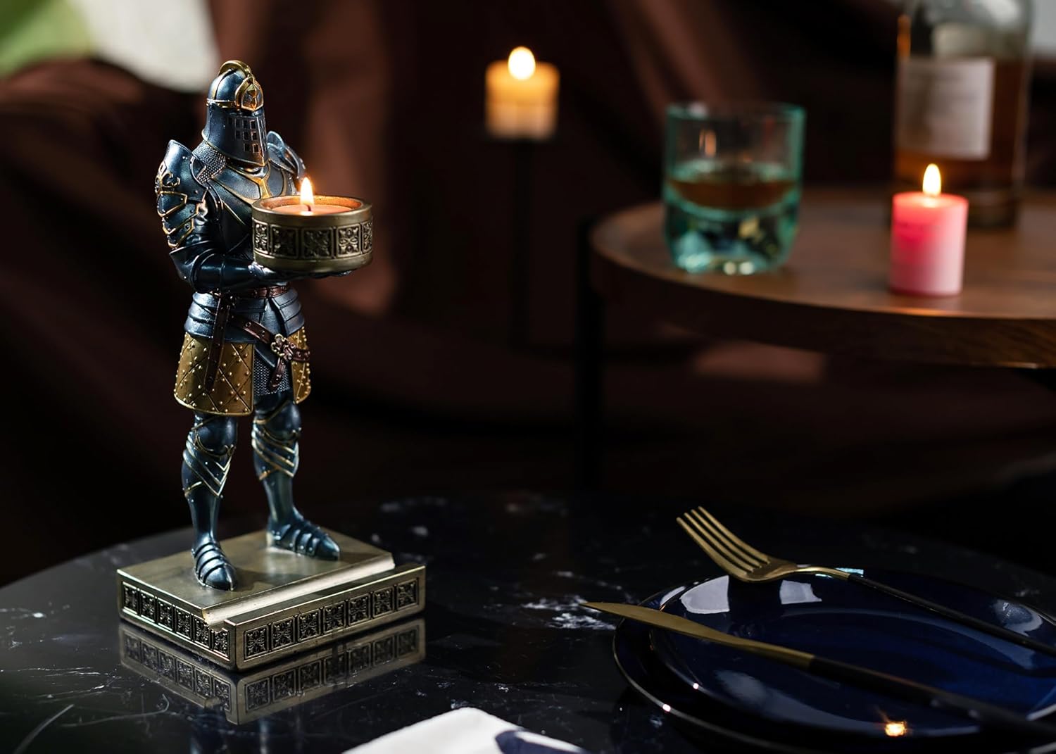 HDMbigmi King's Guard Standup Knight Candlestick Holders Resin TeaLight Holder Warrior Mobile Phone Stand Pen Holder Candle Holder for Restaurant, Altar, Home Table(Blue)