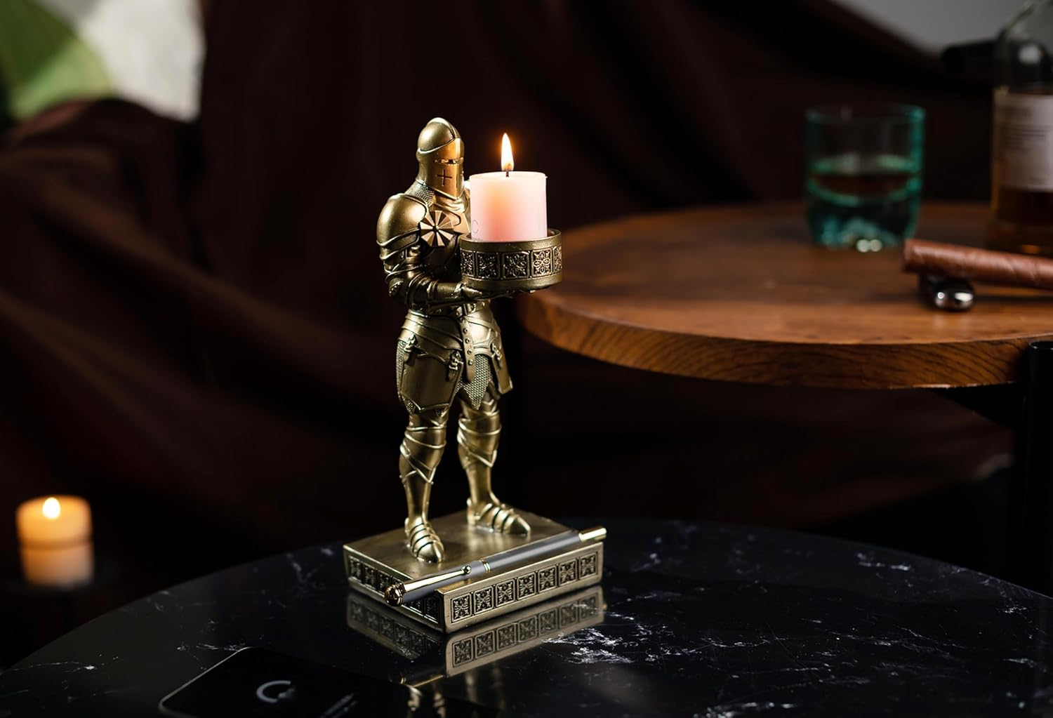 HDMbigmi King's Guard Standup Knight Candlestick Holders Resin TeaLight Holder Warrior Mobile Phone Stand Pen Holder Candle Holder for Restaurant, Altar, Home Table(Bronze)