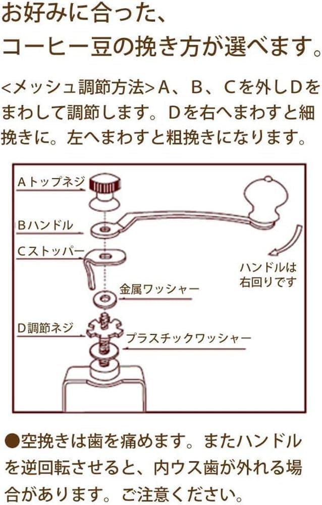 Kalita KH-3AM #42188 Hand-Grind Coffee Mill, Wooden, Durable Cast Iron Cutter, Adjustable Coarseness, Mountain Climbing, Cafe, Interior, Retro