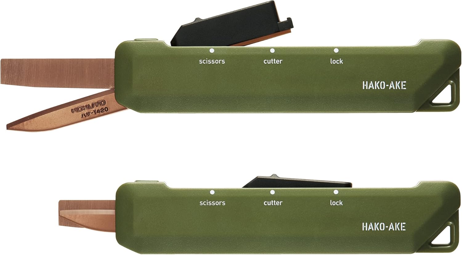 KOKUYO 2-Way Portable Scissors, HAKO-AKE Compact Pocket Size Travel Scissors, Titanium Blade All Purpose Craft Scissor Box Cutter for Office, Travel and Home. Khaki (Hasa-T420DG)