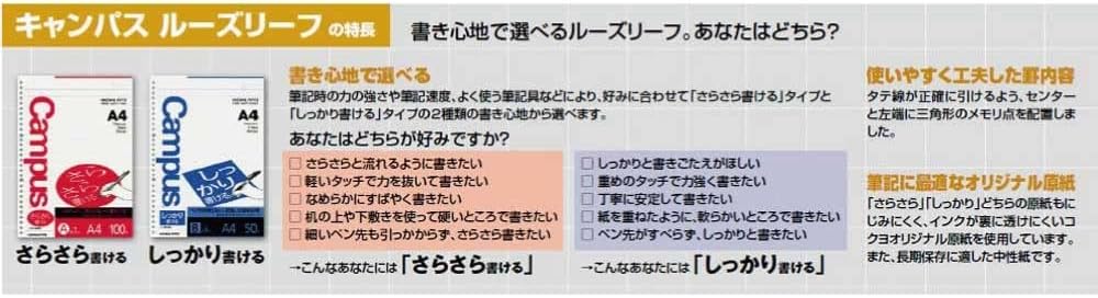 Kokuyo Campus Loose Leaf Paper for Binders, Sarasara Smooth Writing, A5, 5mm Grid Ruled, 20 Holes, 60 Sheets, pH Neutral, Bleed Resistant, 75gsm, Japan Import (NO-807S-5)