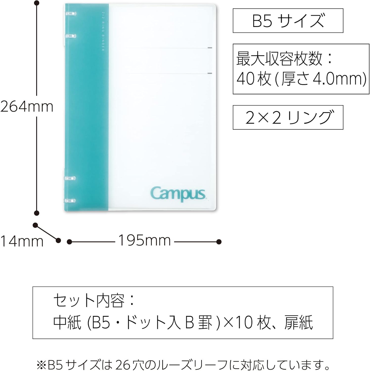 Kokuyo Campus Refillable Notebook, B5 2x2 Slim Ring Binder Notebook with Customizable Title Page, 40 Sheets Capacity. Suitable for 26 Holes Loose Leaf Paper, Light Blue (RU-NP704LB)